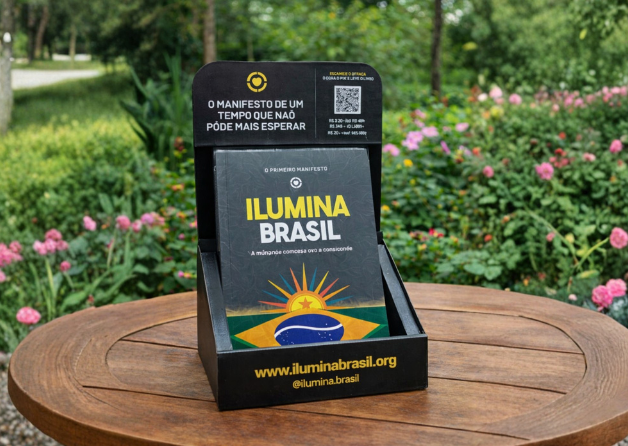 Solicite gratuitamente um expositor com exemplares do Manifesto Ilumina Brasil e disponibilize no seu espaço. O modelo é simples: você recebe os livros e as pessoas contribuem diretamente por PIX ao levar um exemplar.